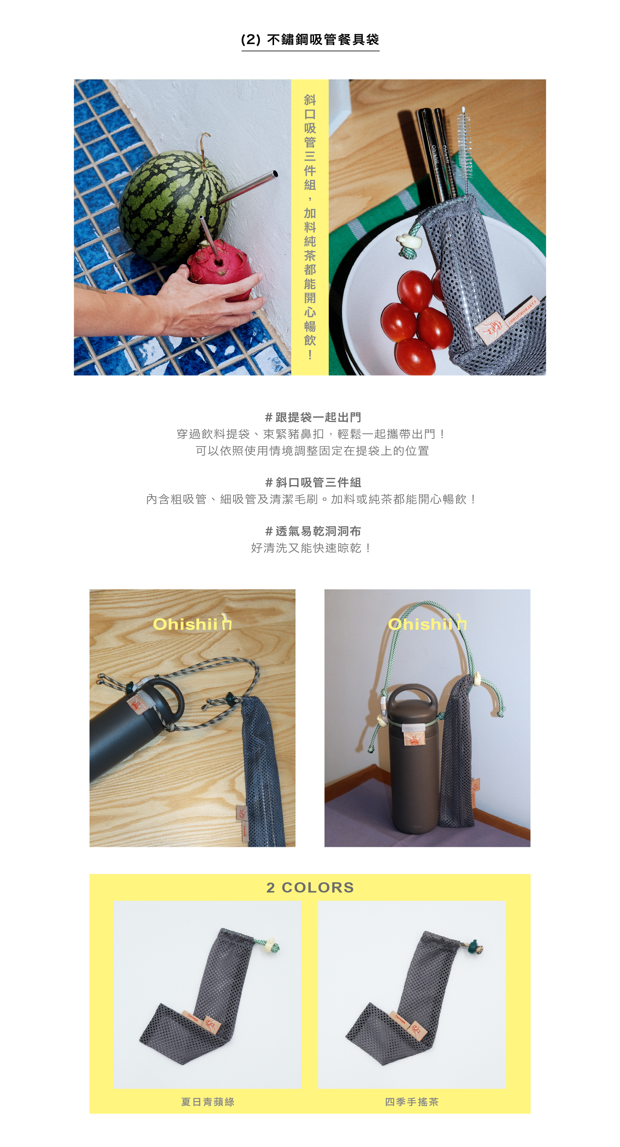 內含不鏽鋼吸管三件組 ( 粗吸管、細吸管、清潔毛刷 ) + 餐具袋